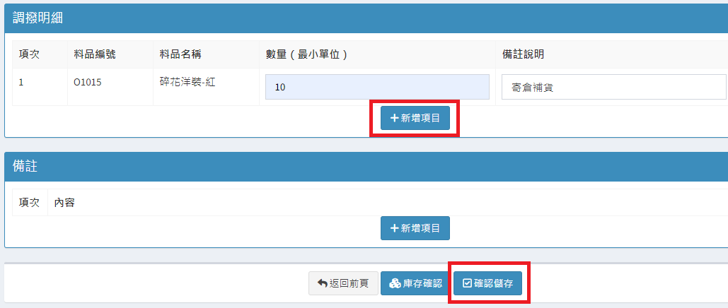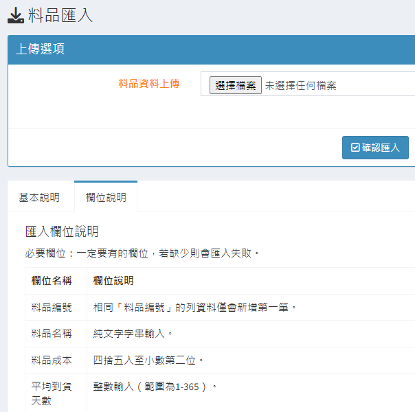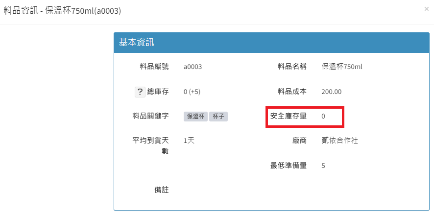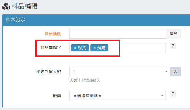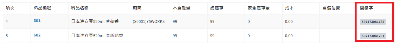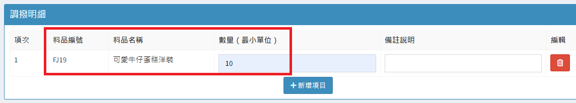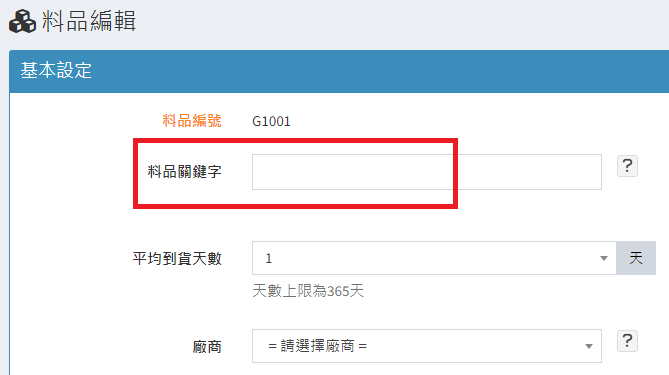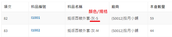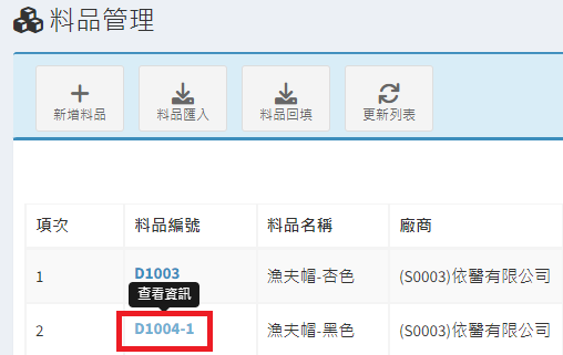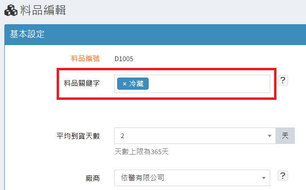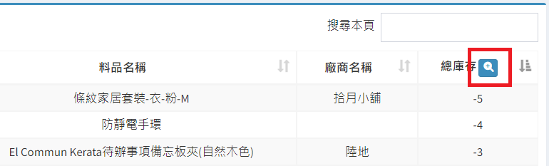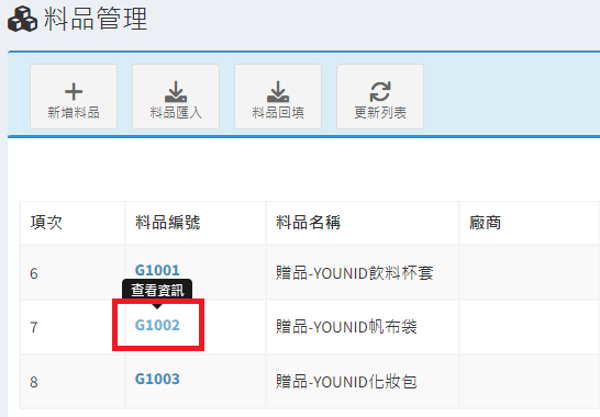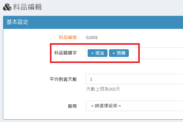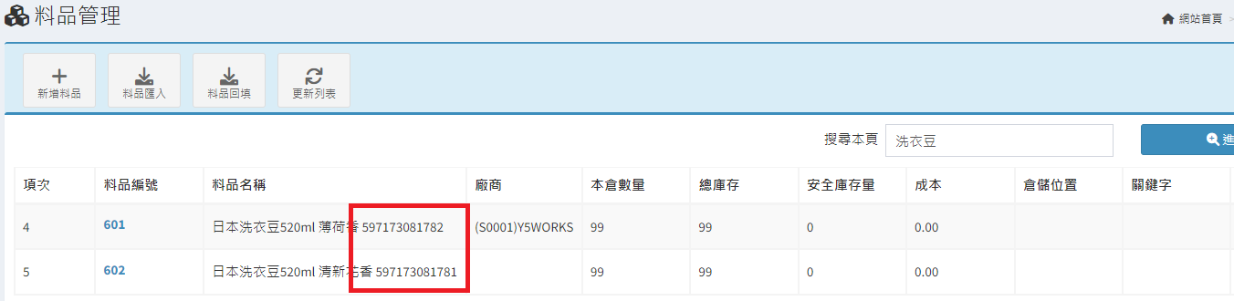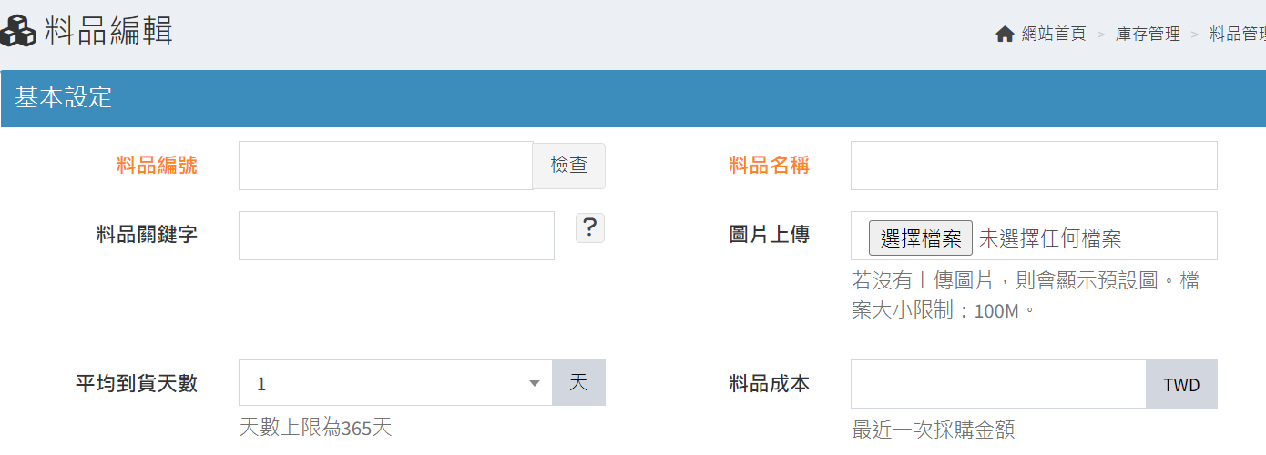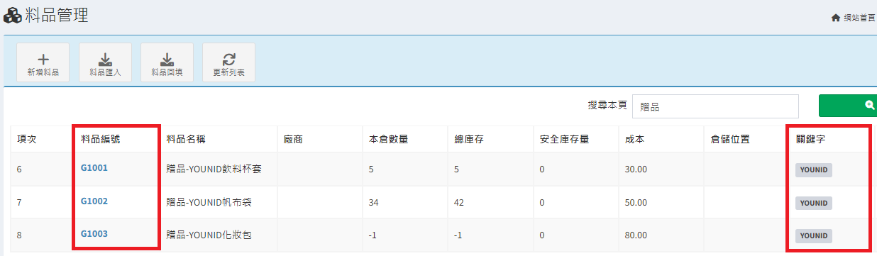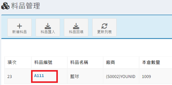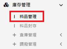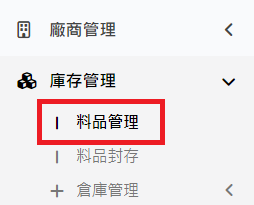 庫存管理>料品管理/