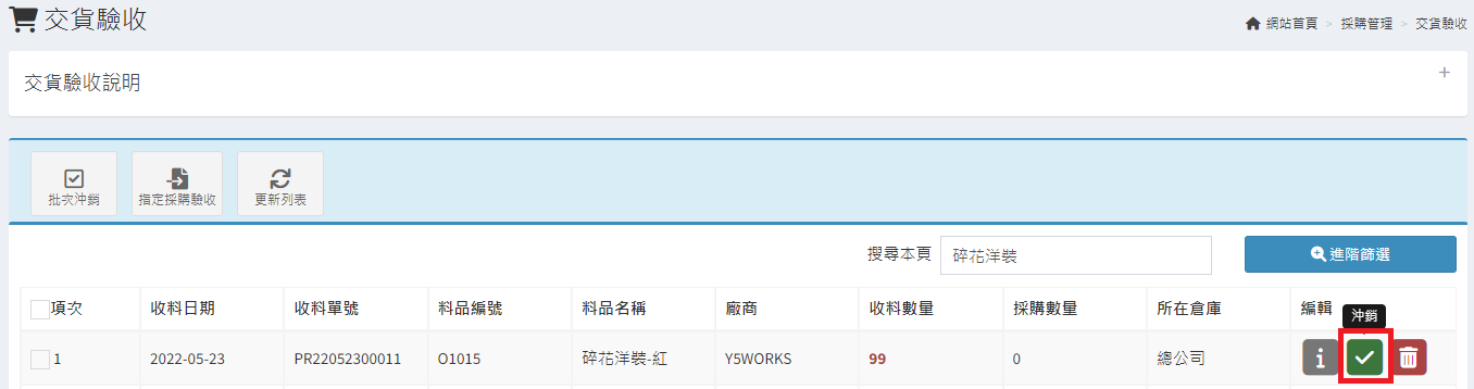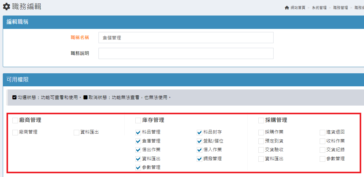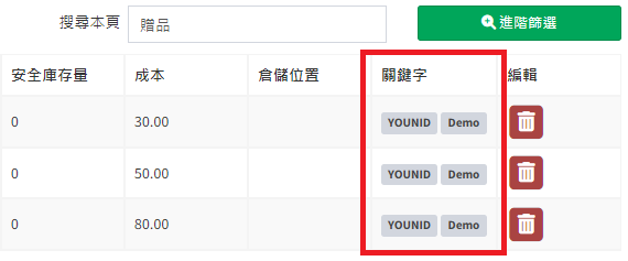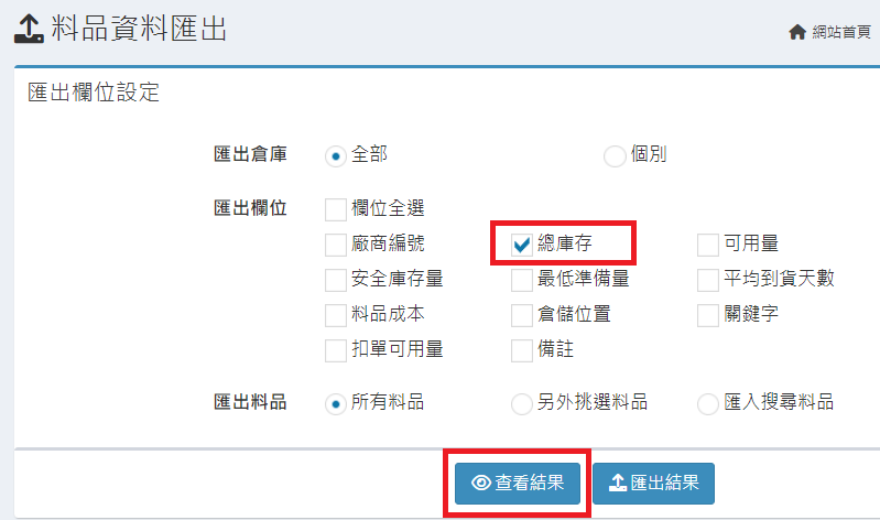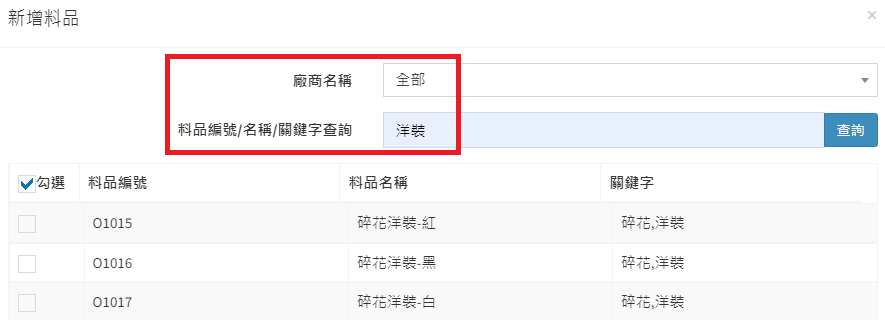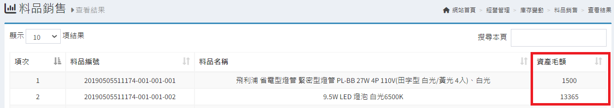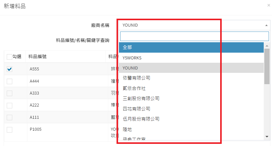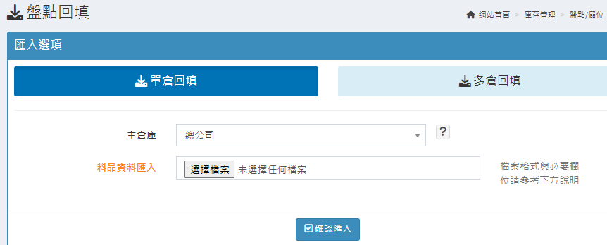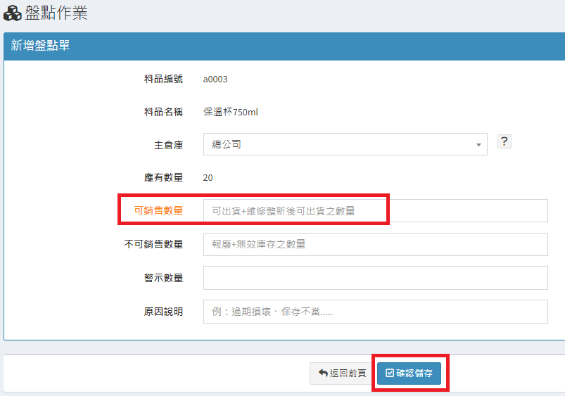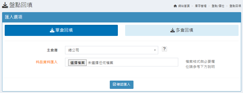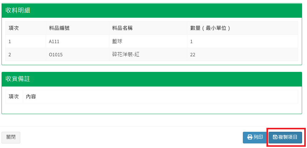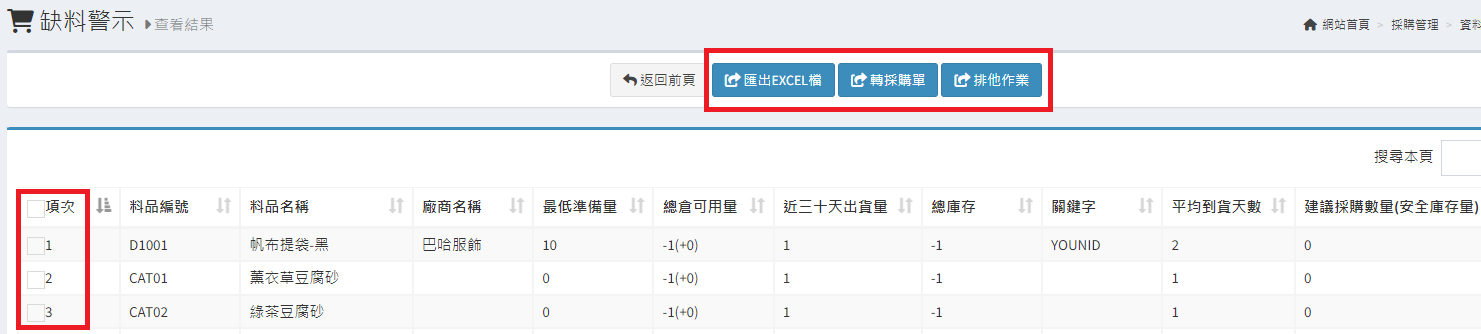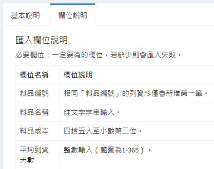 庫存管理>料品管理/