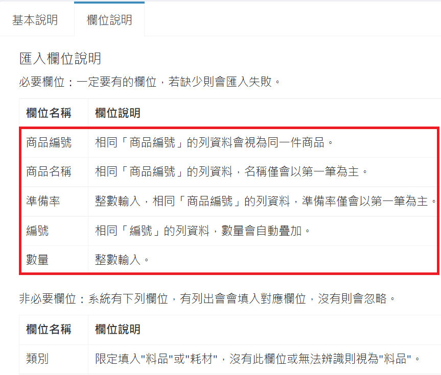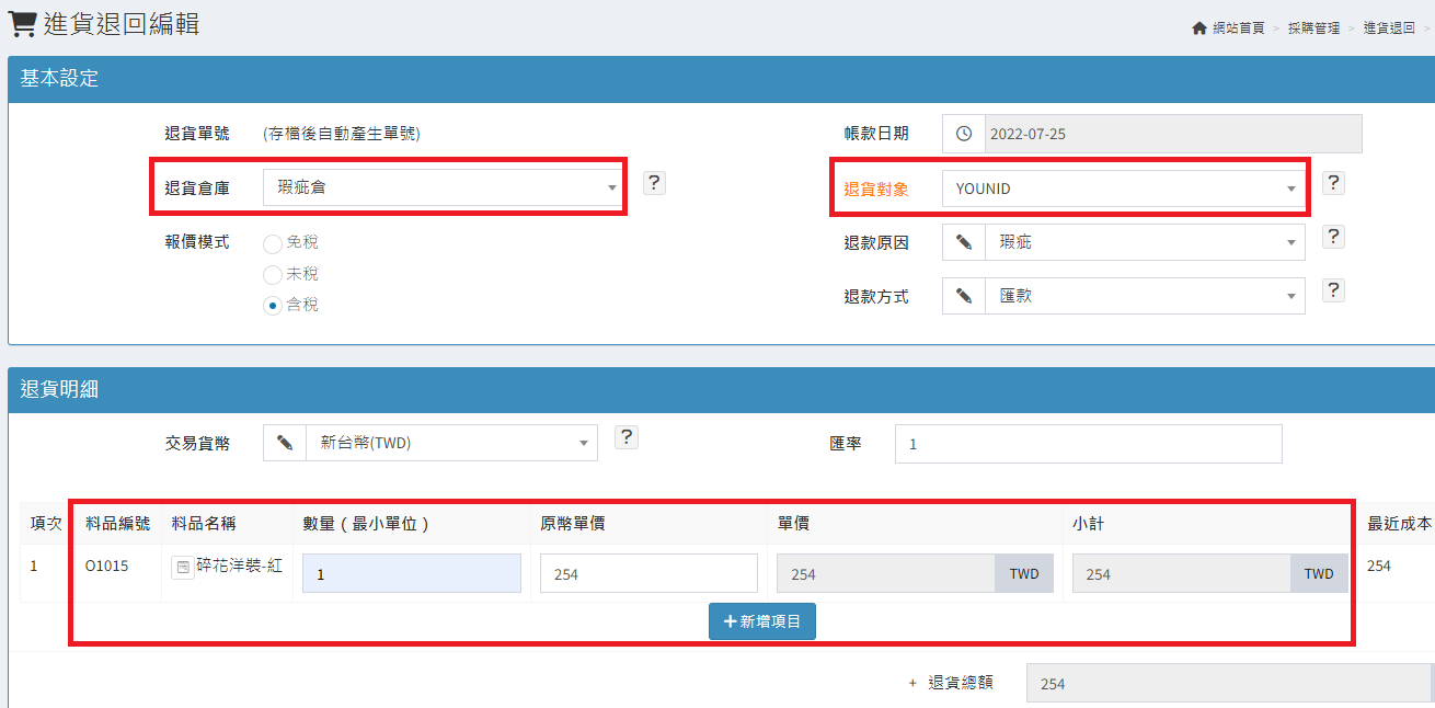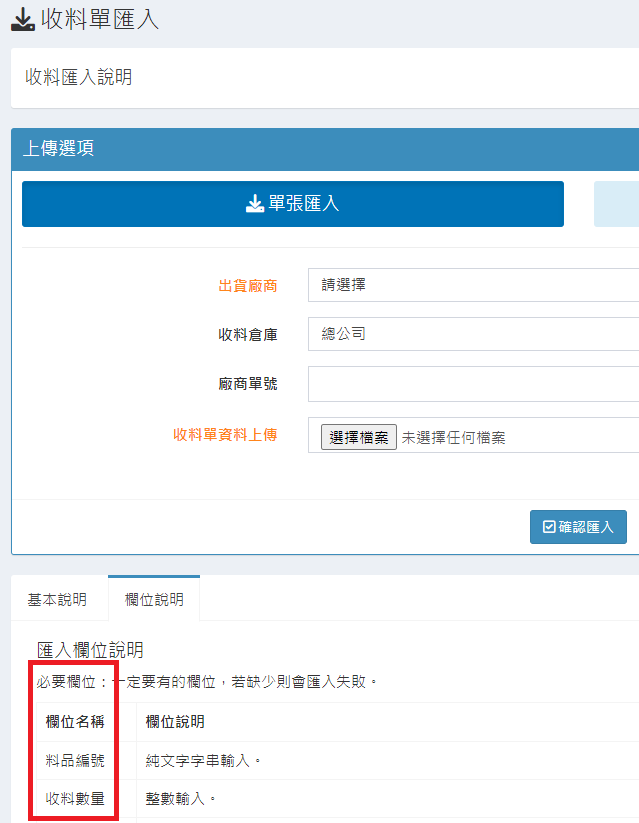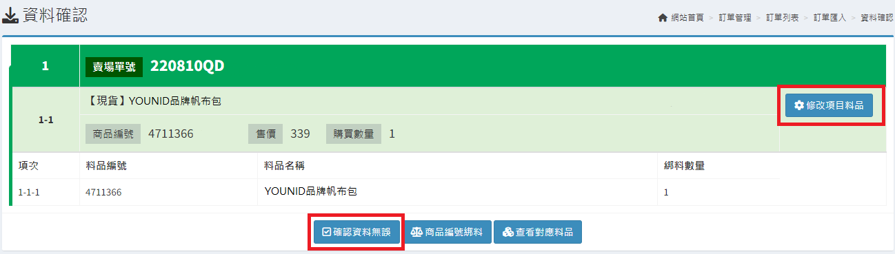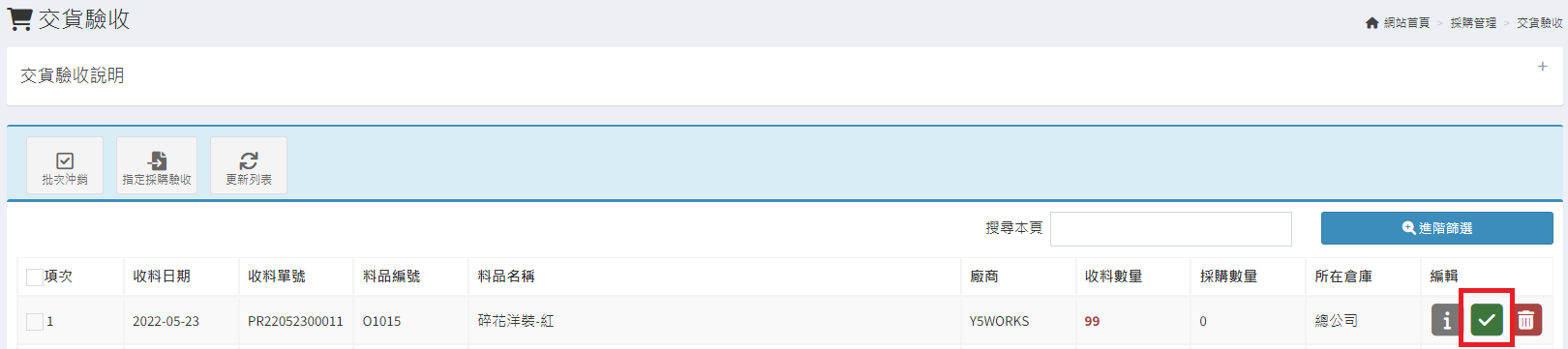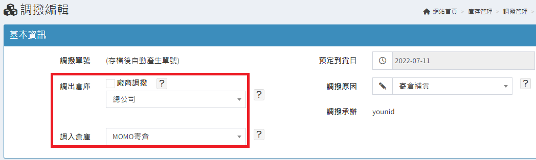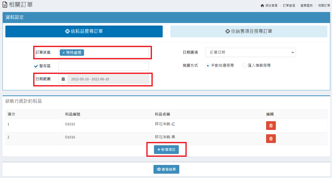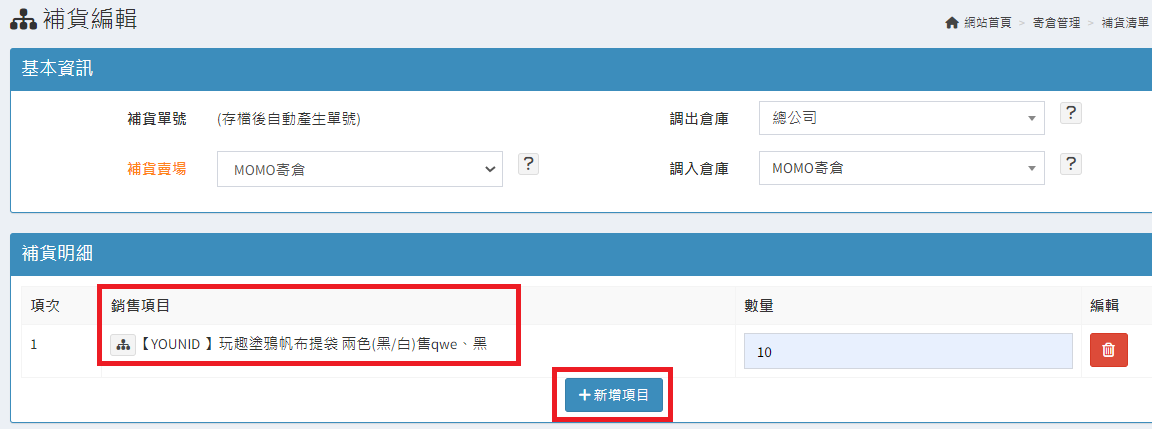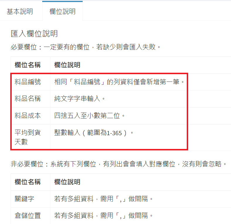 庫存管理>料品管理/
