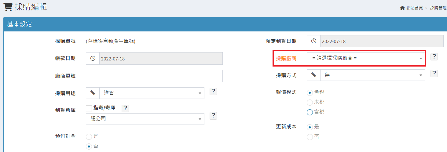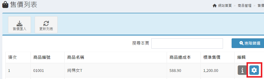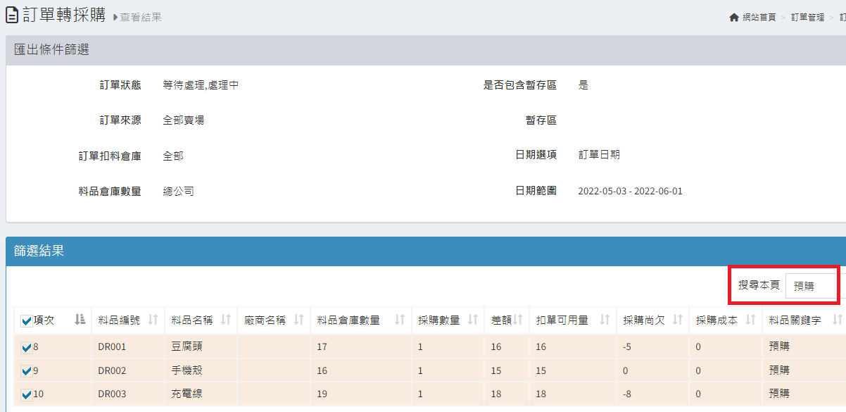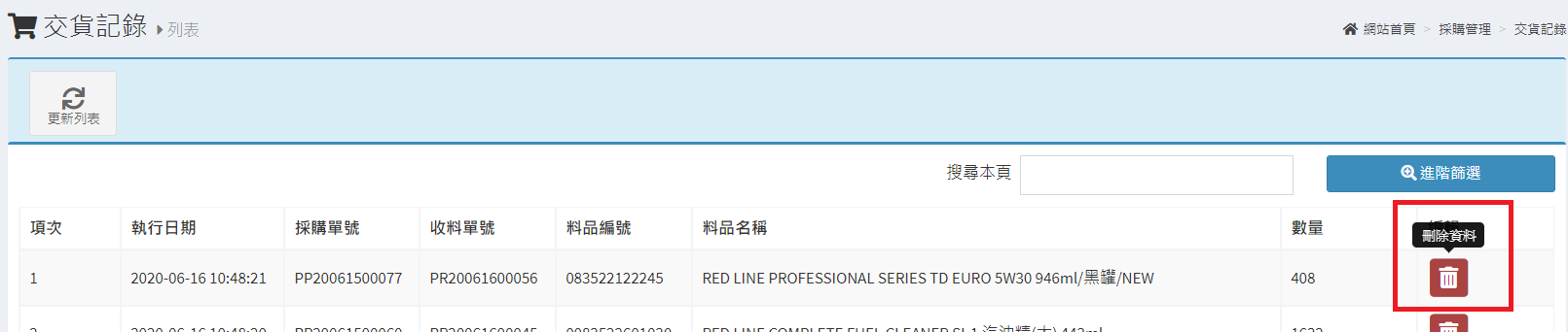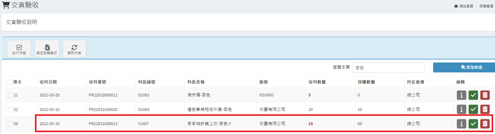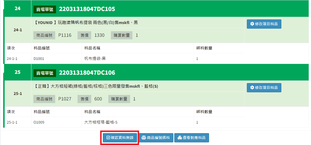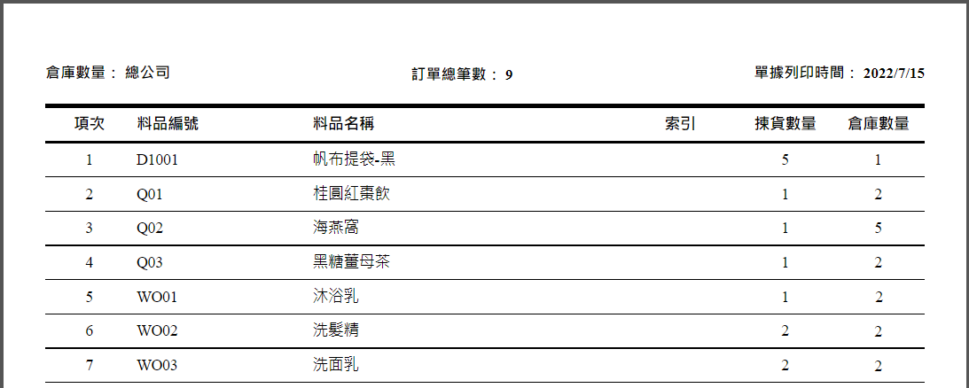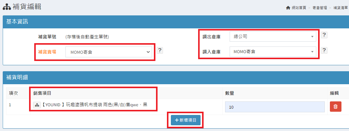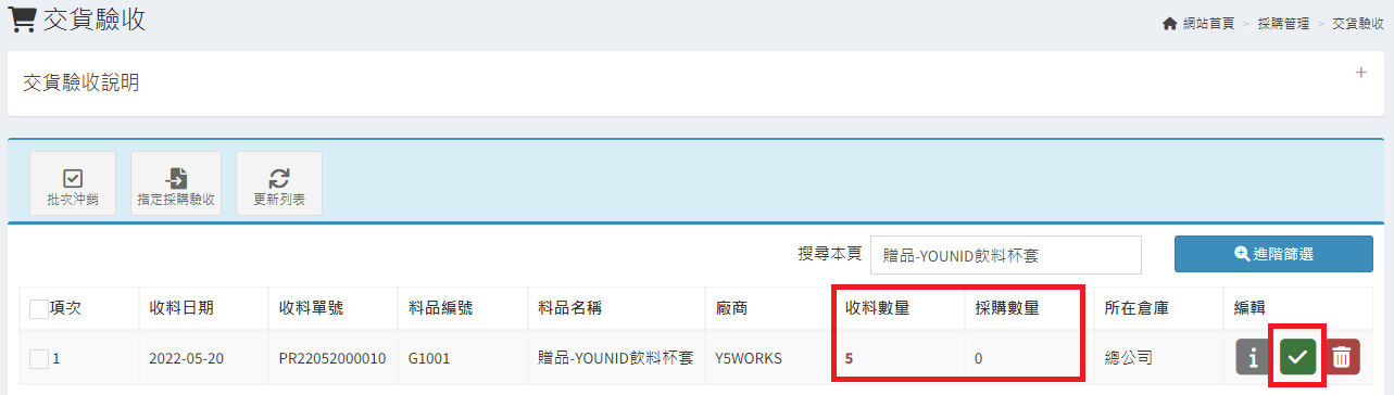 庫存管理>料品管理/