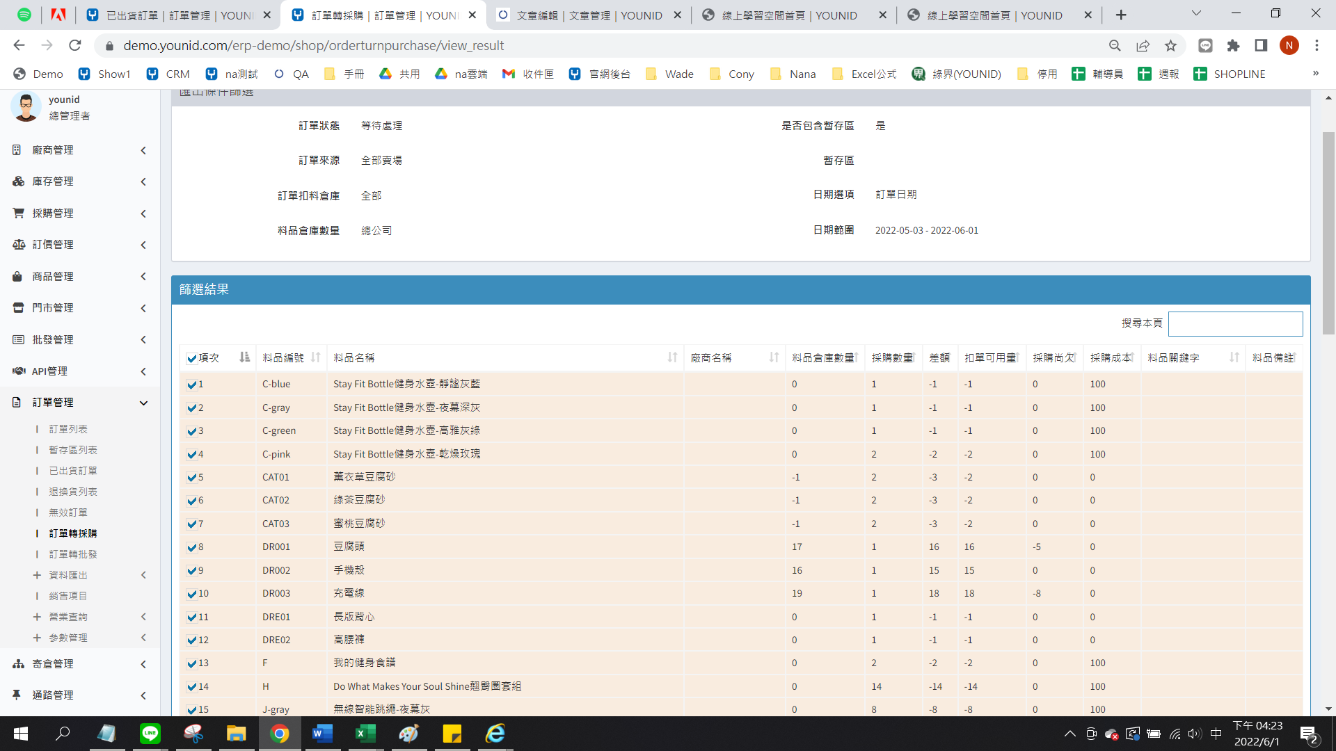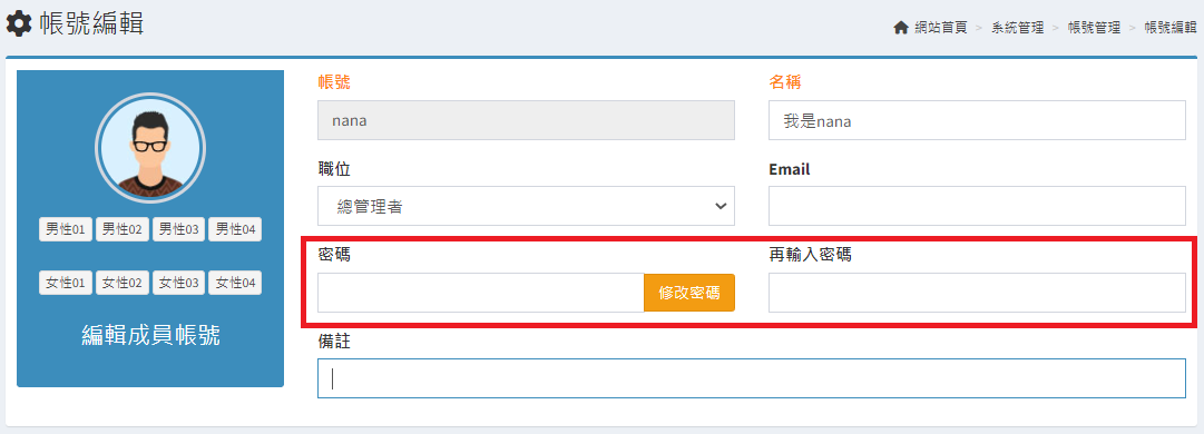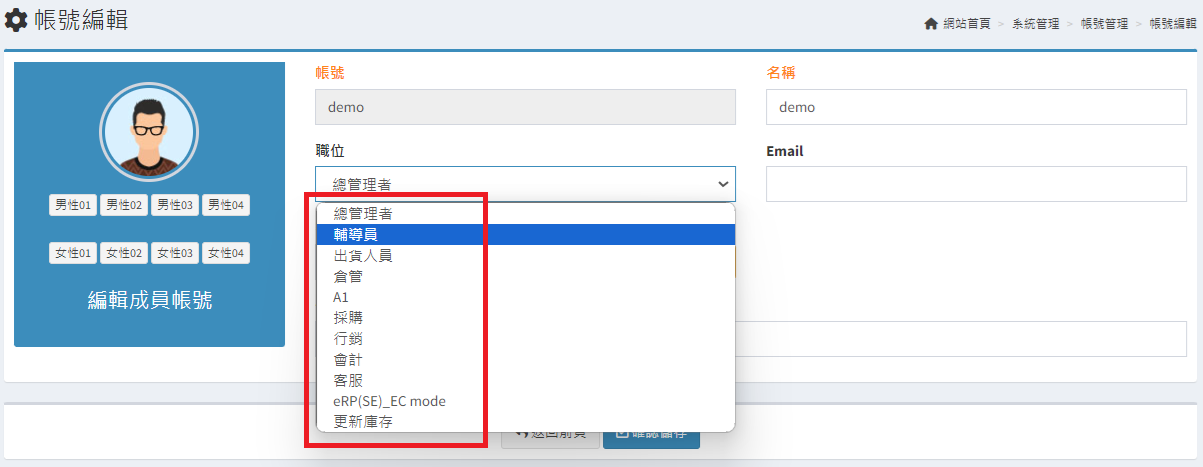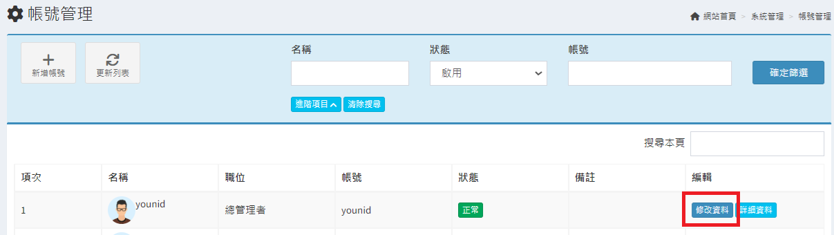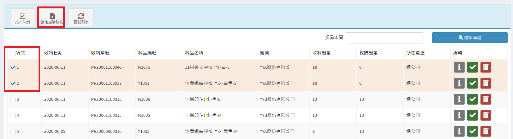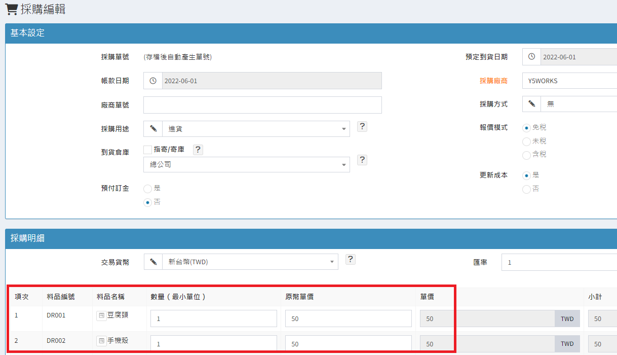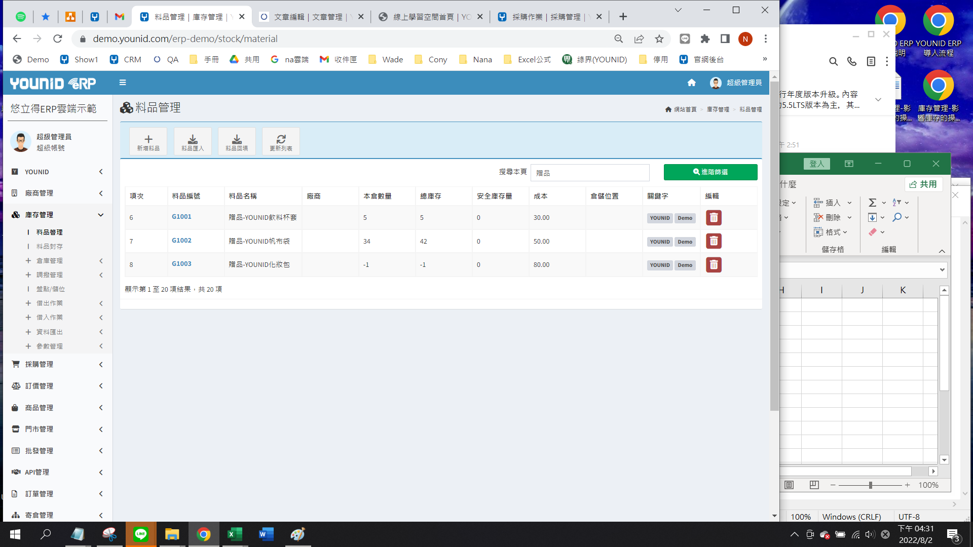 庫存管理>料品管理/